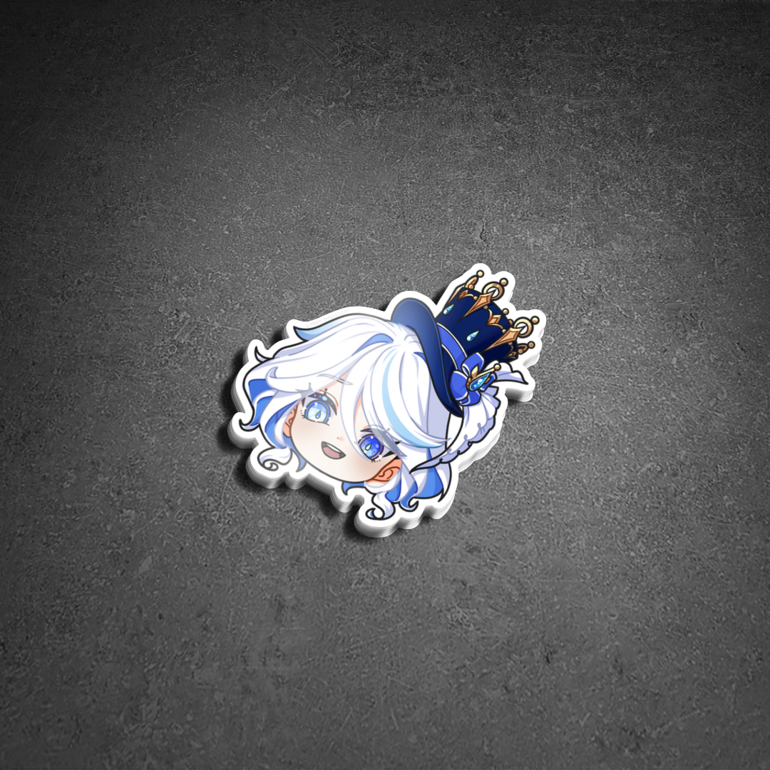 A playful chibi-style sticker of Furina from Genshin Impact, complete with her signature crown and flair. A perfect choice for fans of Fontaine’s theatrical Archon.